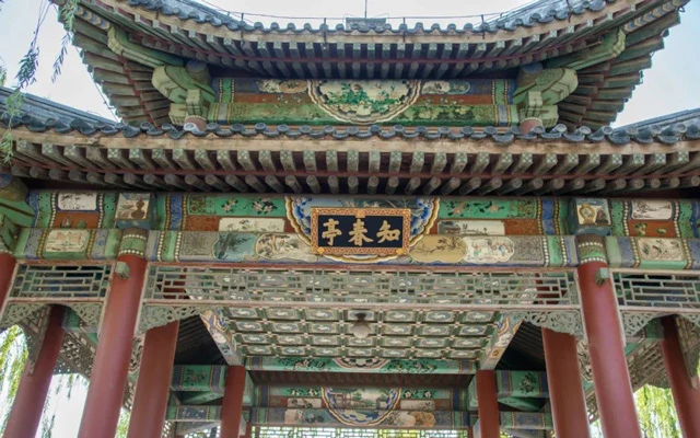 Today, the famous inscriptions in Taoran Pavilion are not limited to those left by Jiang Zao. The black background with gold characters under the eaves on the east side was inscribed by Qi Baishi; the couplets on the columns were written by Weng Tonghe; the three-character plaque "Taoran Pavilion" hanging under the eaves on the west side is signed by Guo Moruo. In addition to these, there are Suzhou-style colored paintings on the beams, and the carved beams and painted rafters display the magnificent style of the northern official pavilion architecture of the Ming and Qing Dynasties.