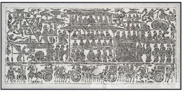 Initially designed for military purposes, pavilions were generally large in scale, constructed with earth and timber, featuring thick walls. Even in urban settings, pavilions depicted on Han dynasty stone carvings exhibited considerable size. Beneath the pavilion was usually a raised platform with a door, supporting a pavilion with or without walls, often multi-storeyed with ladders for ascent, prominently showcasing characteristics of defensive fortresses and advantageous high-ground surveillance.