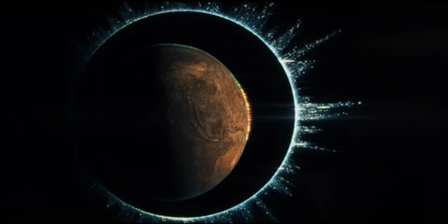 In the face of disaster, Chinese astronauts embody the nation's responsibility by "going to the sky to retrieve the sea," taking on the mission of seeking a future for Earth and a way for humanity to survive. The manned spacecraft's journey from preparation to entering the predetermined orbit encapsulates 20 years of Chinese space exploration, marking the past and the future of reaching into deep space. In an interview, Director Tian Li mentioned that besides restoring the original "annular eclipse" phenomenon, the creators introduced a new concept—the "solar waterfall." After the icy rings block the sun, they amplify the sun's radiation and heat like a magnifying glass, creating extreme weather that poses a more lethal threat to humans who have lost surface water.