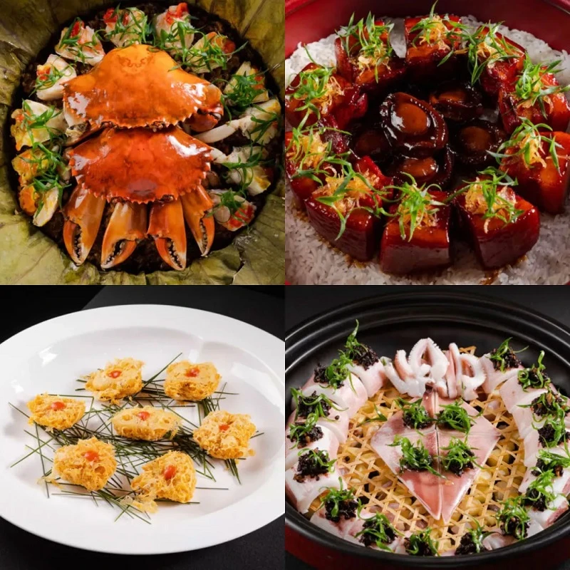 Another standout dish is the Mangrove Red Crab Steamed Rice Cake. This dish features a crab bursting with roe atop a blend of glutinous and jasmine rice. Dried squid, scallops, pork belly, sea urchin, and mushrooms are added, making each bite a treasure trove of flavors. Wrapped in a lotus leaf, the ingredients steam together, melding their flavors and infusing the rice with a rich, savory broth. This dish exemplifies Fujian cuisine's emphasis on fresh flavors, capturing the essence of the region in every bite.
