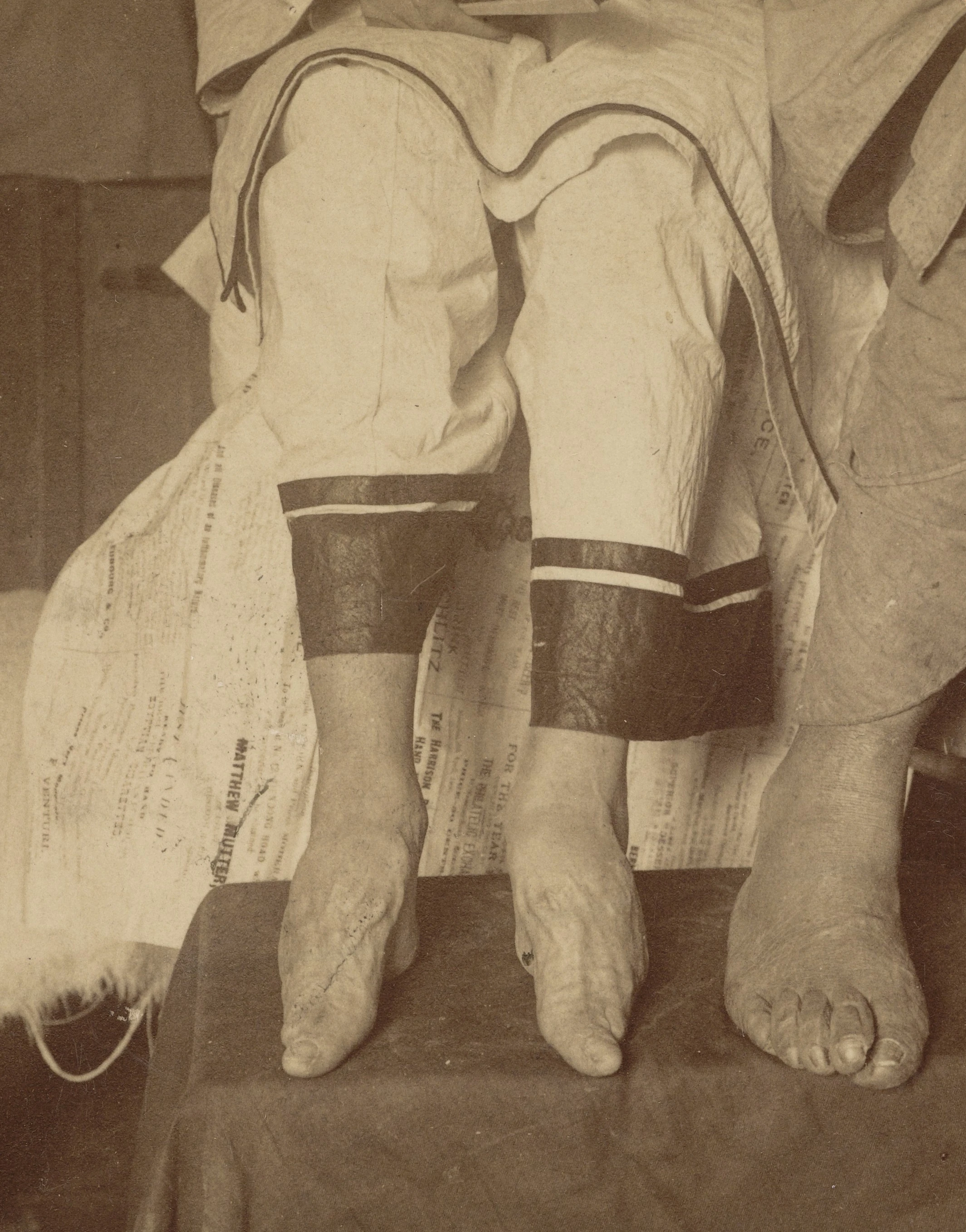 First, each foot would be soaked in a warm mixture of herbs and animal blood. This was intended to soften the foot and aid the binding. Then the toenails were cut back as far as possible to prevent in-growth and subsequent infections, since the toes were to be pressed tightly into the sole of the foot. Cotton bandages, 3 m (10 ft) long and 5 cm (2 in) wide, were prepared by soaking them in the blood and herb mixture.