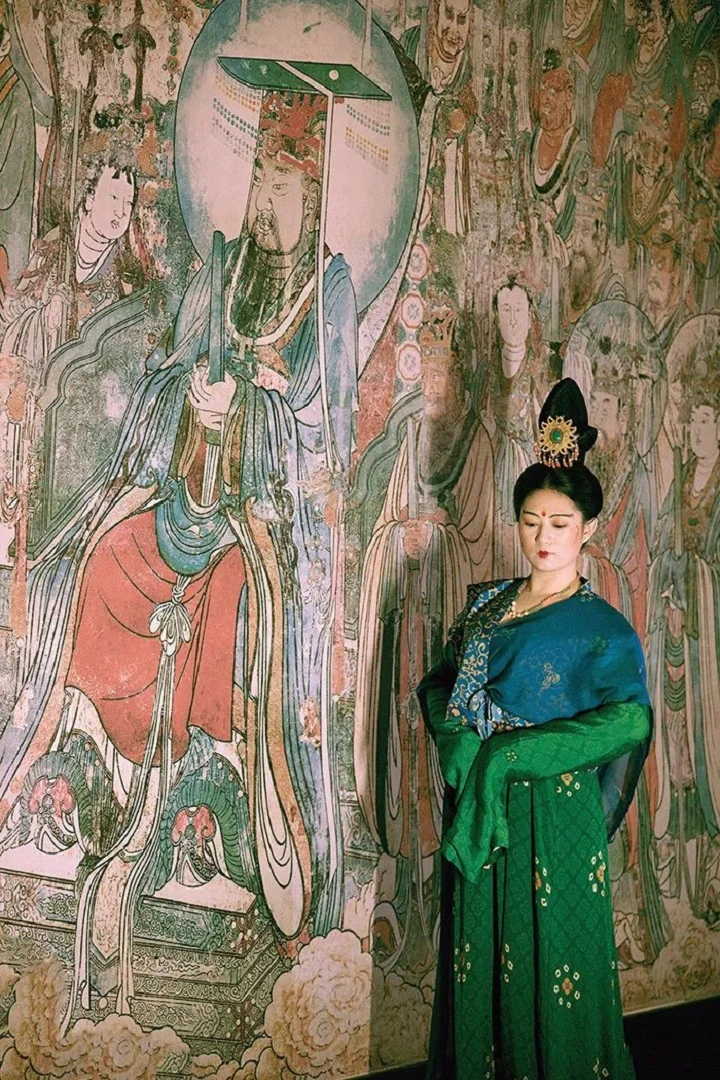 However, my attire still managed to draw extra attention. Nanjie attributed this to the common sight of what many perceive as Hanfu—often "immortal clothing" characterized by flowing skirts and ethereal hair—which actually do not conform to any Tang or Song Dynasty era. Modern makeup trends like false eyelashes and heavy eyeliner are also entirely absent from Tang-era styles. In contrast, this elaborate Late Tang Dunhuang restoration stands out, starkly different from the usual Hanfu attire.