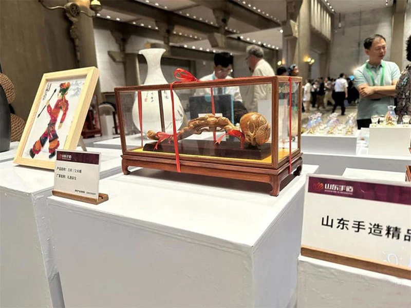 From Weifang kites and Qingdao's "Rabbit King" to Liu Bao gourd baskets and Caozhou dough sculptures, each piece showcased at the exhibition reflects a profound heritage intertwined with contemporary creativity. Zibo's cultural and creative products range from glassware and ceramics to kiln-fired pottery and straw weaving, each design captivating with its unique blend of innovation and tradition.