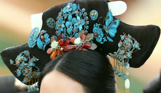 Beyond costumes, headwear serves as a crucial element of visual aesthetics for female characters. Instead of exaggerated hairstyles, integrating traditional intangible cultural heritage elements into hair accessories creates a sophisticated and refreshing visual appeal. For example, in "Ruyi's Royal Love in the Palace," the use of Tian-tsui ornaments on the hair of palace concubines reflects elegance and simplicity.