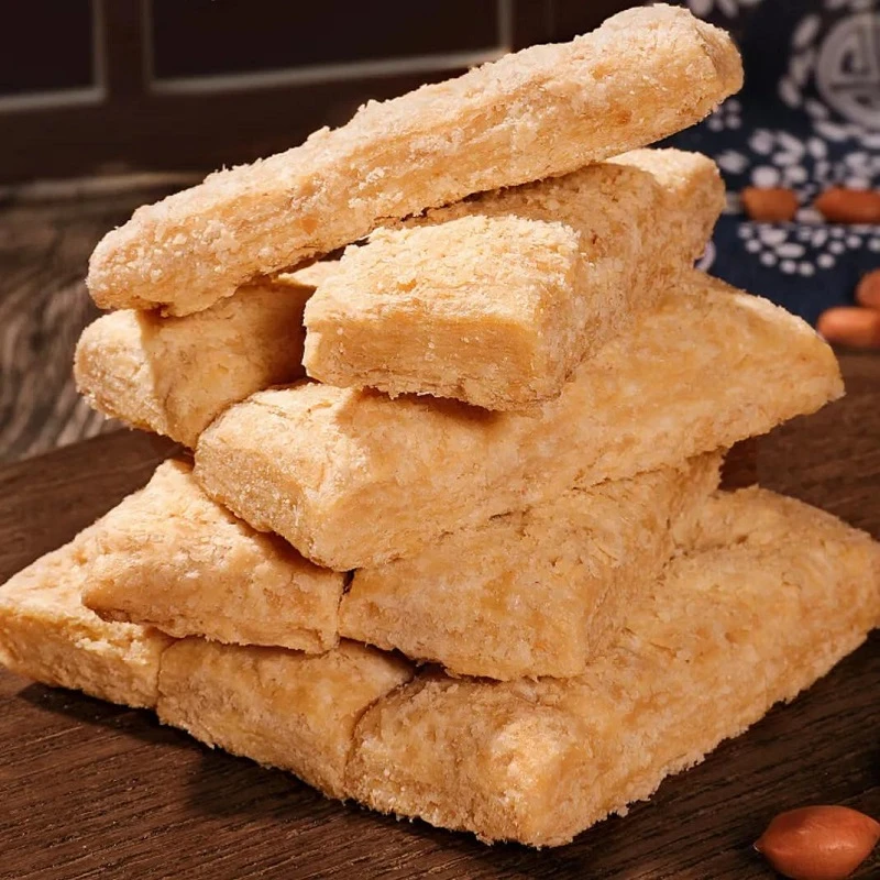 Peanuts are also a key ingredient in sweets. Whole peanuts are mixed with maltose, flattened, and cut into "peanut candy." The upgraded version, nougat, includes a creamy milk flavor. The finely crafted peanut cakes from Kaifeng are made by grinding roasted peanuts and mixing them with syrup and glutinous rice flour for a soft, sweet treat.
