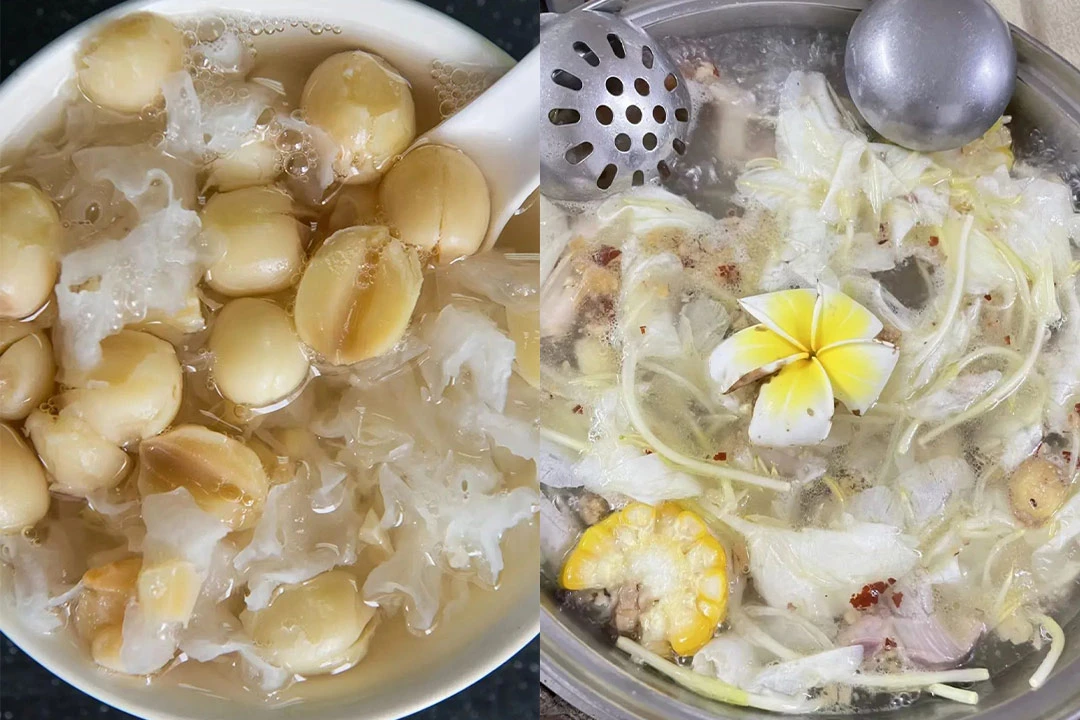 Another popular ingredient is Five-fingered Hair Peach (Wu Zhi Mao Tao). Despite its name, it has nothing to do with peaches; instead, it gets its name from its five-fingered leaves and fuzzy, peach-like fruit. This ingredient is loved for its faint coconut fragrance when stewed, making it a versatile addition to chicken, pork bones, or pork knuckles.