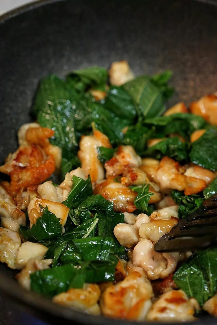 In Sichuan, perilla chicken is a familiar comfort food, where the herb makes two appearances: first, the stems are used during the cooking process, and then the tender leaves are quickly blanched before serving. It is believed to have medicinal properties, making it a popular choice for nourishing postpartum women or children with poor appetites. This dual use of perilla in both traditional medicine and cuisine underscores its versatility and enduring appeal.