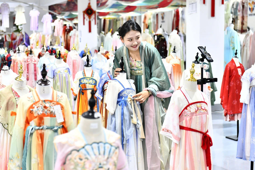 The city of Cao County in Shandong Province, once an unremarkable industrial town, has transformed itself into the self-proclaimed "Center of the Hanfu Universe." Here, more than 2,500 Hanfu enterprises, 14,718 online stores, and 206 offline experience shops employ nearly 100,000 people in what has become China's largest original Hanfu production cluster. The county's Hanfu online retail sales reached 4.49 billion yuan in just the first seven months of the year, a 16.5% year-on-year increase.