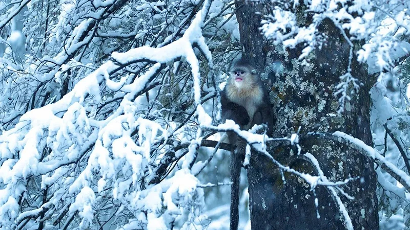 Deep in the heart of Shangri-La, where towering mountains meet misty valleys, lies a place shrouded in mystery and beauty. White Horse Snow Mountain, nestled in the northwestern corner of Shangri-La, boasts rugged peaks blanketed in snow year-round, resembling a galloping white stallion. It’s here, among these breathtaking landscapes, that one of the world’s most striking animals resides—the Yunnan golden snub-nosed monkey.