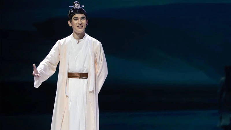 The young prodigy, Ximeng, is adorned in a gossamer-like black silk veil and attire crafted from authentic silk, embodying the ethereal genius of a painter touched by divine inspiration. In stark contrast, the ensemble of artisans known as the "green craftsmen" don garments that echo the very palette of "A Thousand Li of Rivers and Mountains." Their costumes, with their layered sleeves and cascading hems, mirror the undulating landscapes they strive to capture on silk.