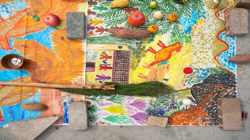 In the heart of China's Central Plains, a peculiar phenomenon has unfolded quietly, hidden from mainstream attention. Every year, on certain traditional lunar calendar days, groups of individuals gather to create mesmerizing visual compositions. These arrangements, often constructed from everyday objects like cigarette packs, fruits, instant noodles, and soda bottles, are coupled with colorful watercolor paintings, forming intricate and cryptic patterns that seem to whisper messages of spiritual significance.
