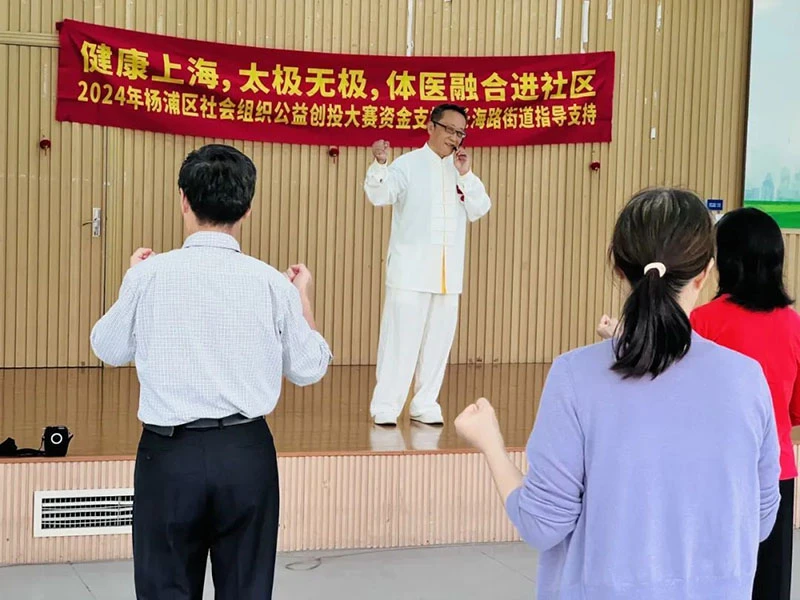 In a bustling world where health and wellness are increasingly valued, a recent event at the Changhai (长海) Road Community Center in Shanghai sought to merge traditional wisdom with community wellness. Themed "Healthy Shanghai, Boundless Tai Chi," this event invited Tai Chi enthusiasts Lu Xuejun (鲁学军) and Nie Yonggang (聂永刚) to bring the grace and philosophy of Yang-style Tai Chi to local residents, offering not only an introduction to the ancient art but also a hands-on wellness experience that bridges body, mind, and community.