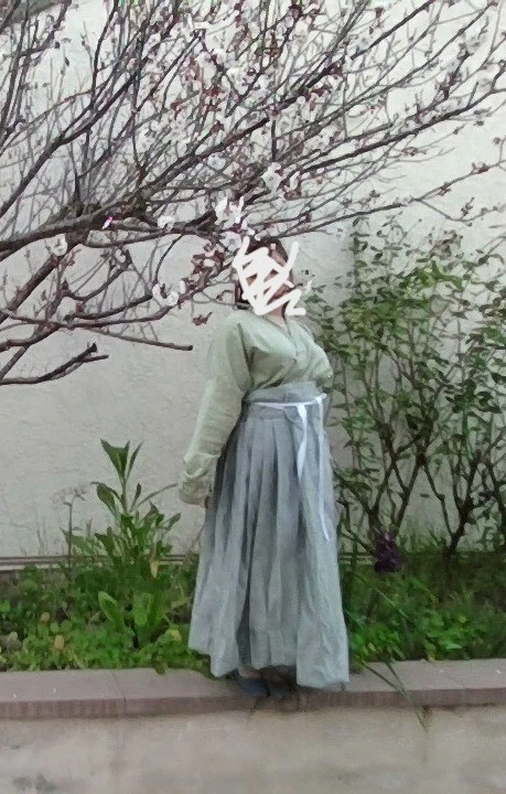 The green ru was a sheet in another life, as mentioned in the article, and the blue skirt was a curtain.
