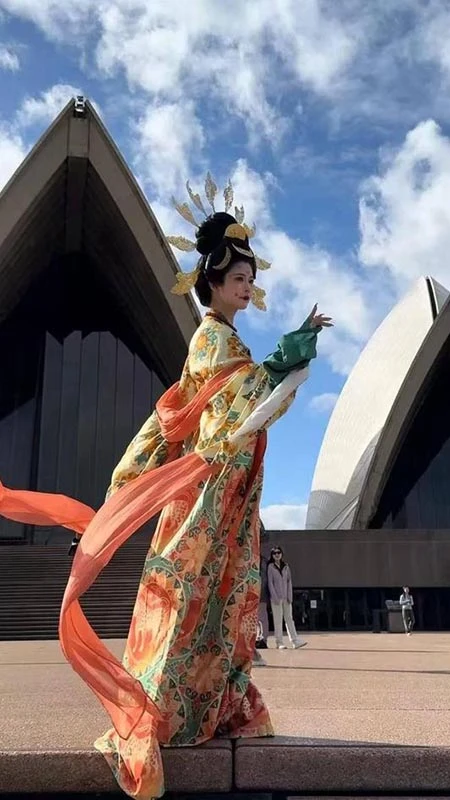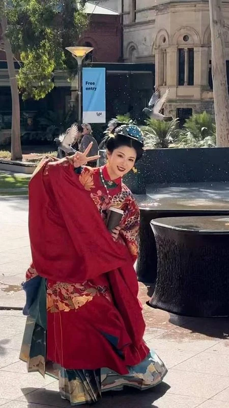 Zhou’s passion for Hanfu has extended far beyond China. She shares her love for the attire through videos and travels, wearing Hanfu in countries like Australia, France, and Japan. Her viral videos, such as one where she introduces Hanfu to foreign tourists while wearing an elaborate Ming-style wedding outfit, have drawn international attention.
