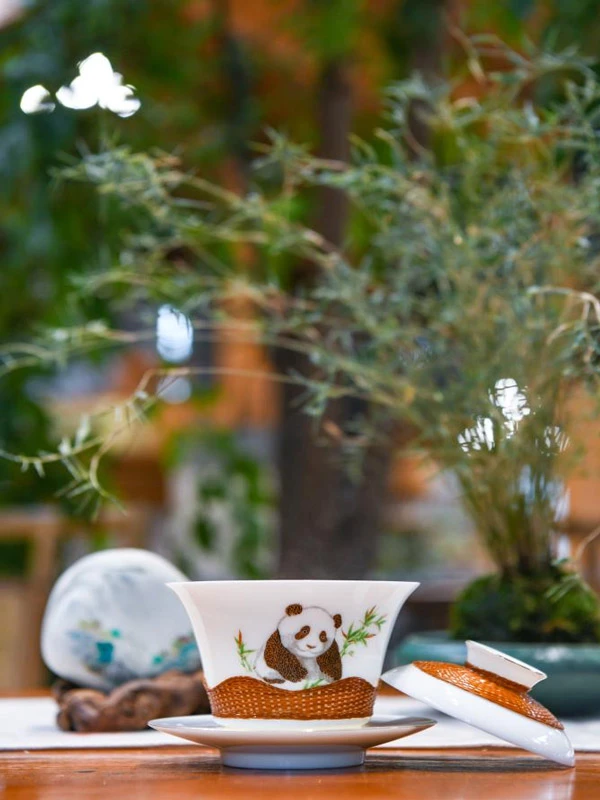 The pièce de résistance is the panda motif: traditional ink-wash paintings of pandas clutching bamboo stalks are kiln-fired onto the porcelain, creating a dialogue between Sichuan's ecological identity and its craft heritage .