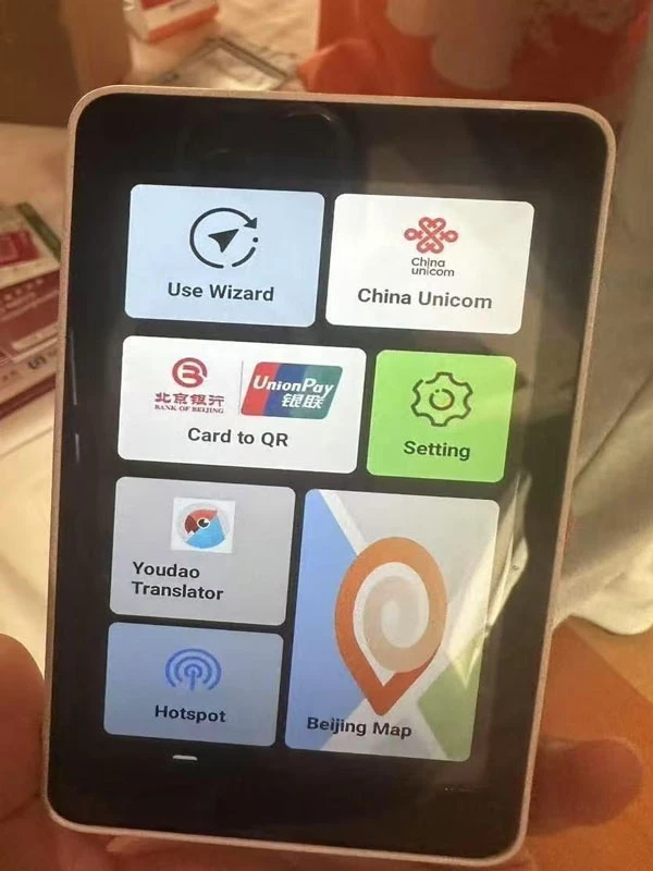 This pocket-sized device—lighter than a power bank—combines a SIM card slot, Wi-Fi hotspot, QR scanner, and translation camera. Developed by China UnionPay, Beijing Bank, and Beijing Unicom, it lets travelers: