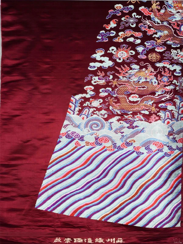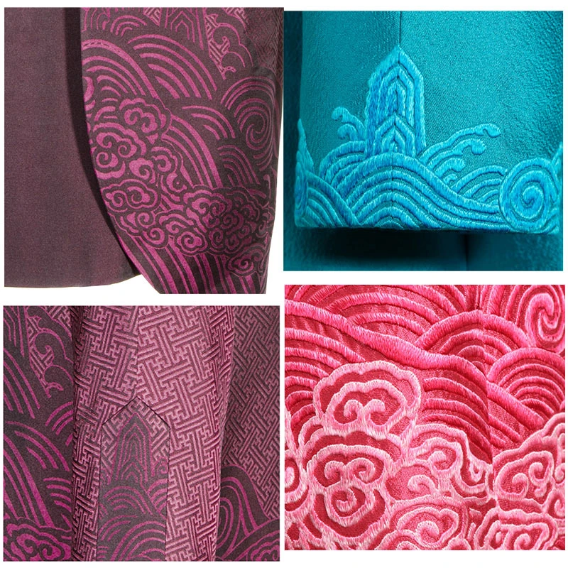 The female attire's "Sea Water and Cliff" embroidery pushed Suzhou's signature craft into new dimensions. Using hair-thin silk threads (0.015mm diameter), artisans created chromatic gradients unseen in classical works: