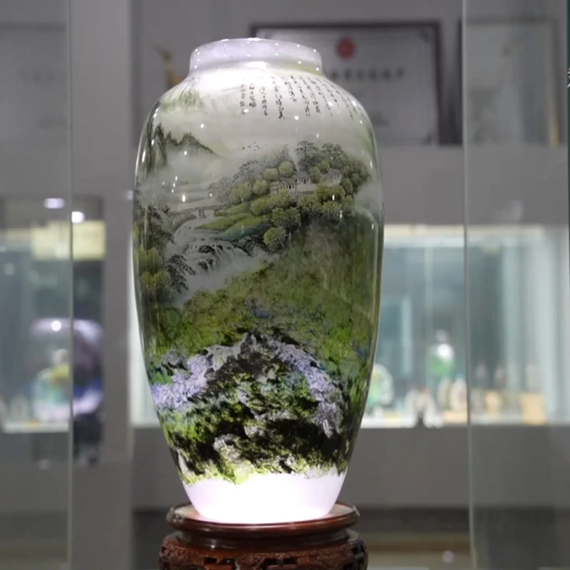 The Zhang family's narrative is just one thread in Lupai's renaissance. Another branch, led by Zhang Guangqing and his son Zhang Luhua, has pioneered "dazzling-color inner-bottle painting," incorporating techniques like splashed ink (泼墨) onto iridescent glass surfaces. Their Prismatic Peony series—a riot of pinks and blues cascading across a 1-meter-tall vase—challenges the notion that inner painting must be diminutive.