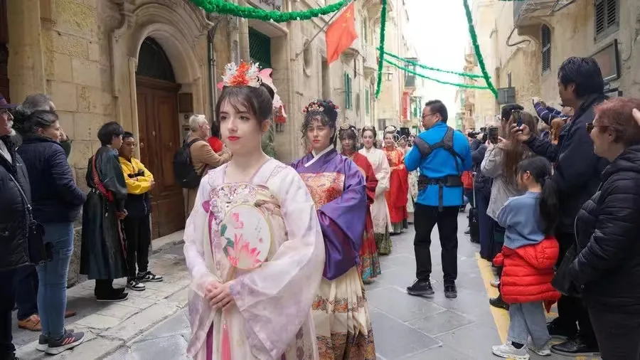 On February 17th local time, under the auspices of the China Cultural Center in Malta, a wonderful Hanfu show was staged on the streets of Valletta, an ancient Mediterranean city. Along the main street, Hanfu enthusiasts wearing Hanfu attracted the attention of local people and tourists.