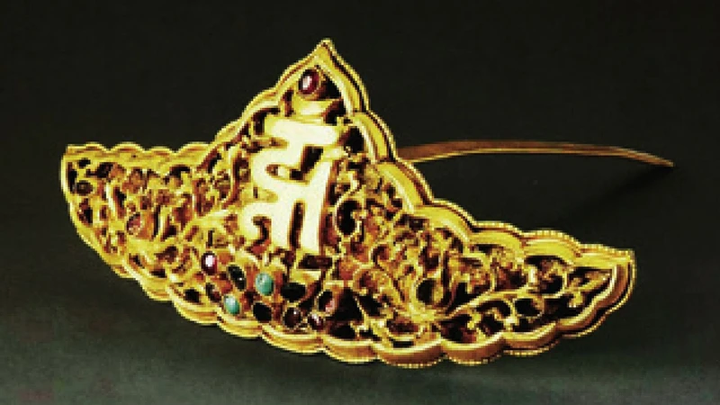 Fenxin came in many motifs, from phoenixes and peacocks to Buddhist imagery like pagodas and Sanskrit inscriptions. Their precise placement adhered to strict aesthetic and hierarchical principles, much like clothing etiquette. What made me chuckle was that the show’s stylists had completely reversed the intended positions of these pieces! Meanwhile, on the Grand Lady of Laiyang’s head, what should have been a "manguan" (满冠)—a broad, mountain-shaped hairpiece—was incorrectly placed at the front instead of the back. While manguan were meant to be prominent, they were not designed to overshadow the delicate layering of front-facing jewelry.