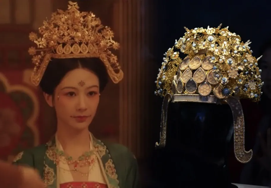 Interestingly, both crowns, while impressive, contain creative reinterpretations. Princess Xianzhu’s crown, though based on an actual relic, was found fragmented, leaving its original assembly unclear. He Weifang’s crown is a Tang-style adaptation of Empress Xiao’s Sui Dynasty crown, with only the Sui prototype surviving. Tang Dynasty specifics remain speculative, relying on artistic license. Any resemblance is purely coincidental.