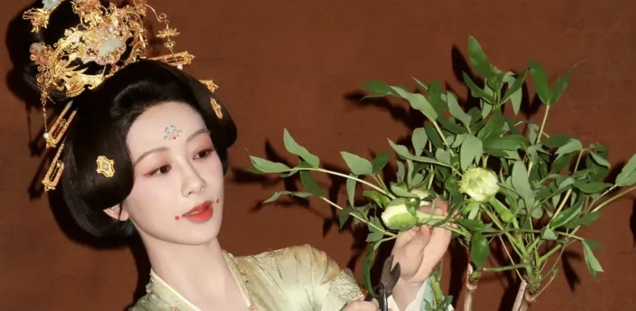 Tang women embraced maximalism. Imagine gold leaf swirls, ruby-studded cheeks, or peony-shaped mianye—all while maintaining harmony. Dunhuang murals reveal how these designs balanced extravagance with elegance, creating a "mysterious allure" that still captivates modern audiences.