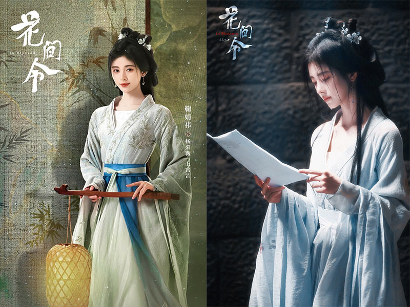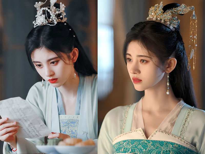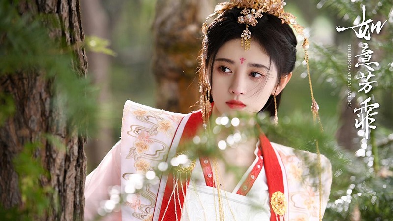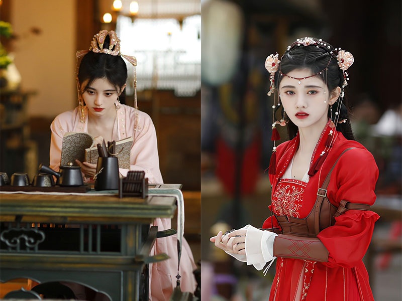 The series reimagines historical aesthetics through a "light historical" lens, blending minimalist design with subtle opulence. Fu Rong's wardrobe, featuring flowing robes with delicate floral embroidery, reflects her ingenuity and grace, while Xu Jin's muted armor underscores his stoicism. Sets like the mist-veiled Ruyi Pavilion, with its sweeping arches and shadowy corners, evoke an ethereal timelessness, contrasting starkly with the ornate excess typical of court dramas. This visual restraint extends to color palettes—soft blues and ivories dominate, punctuated by bursts of gold in jewelry motifs—creating a dreamlike atmosphere that mirrors Fu Rong's prophetic visions.