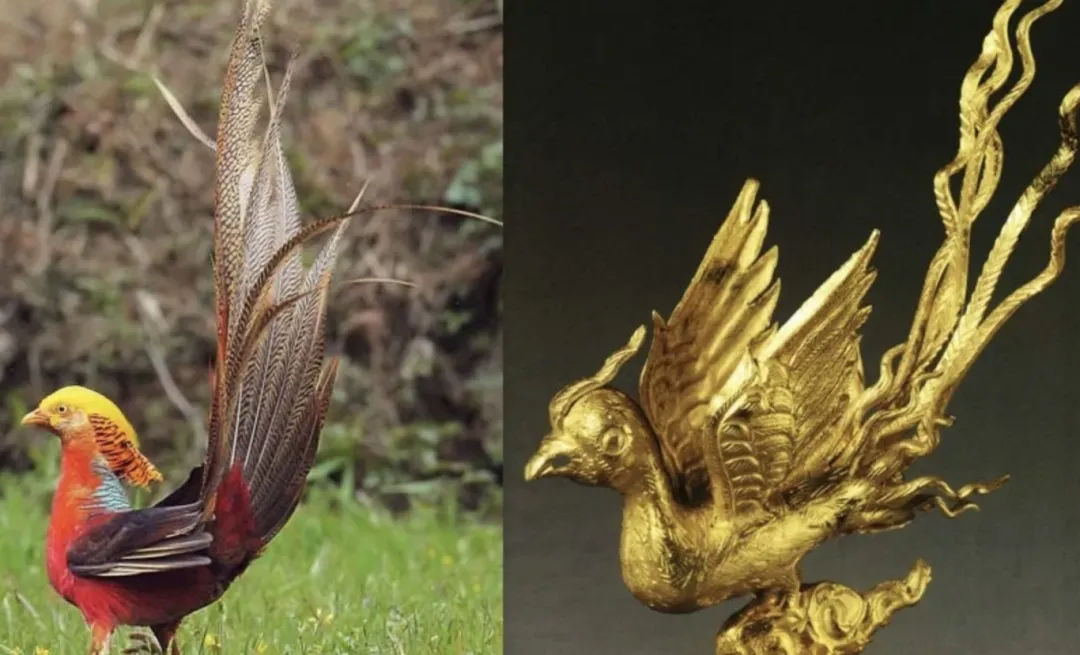 Hua Chong, part of the emperor’s Twelve Ornaments, is also called 'Bi' (鷩). Its exact form is unknown, but the golden pheasant is its prototype as it matches ancient descriptions. Kong Yingda noted that the pheasant’s five colors resemble floral brilliance, and Hua Chong symbolizes the emperor’s virtues. Its high status comes from representing the Five Colors (青, 赤, 黄, 白, 黑) and Five Virtues (仁, 礼, 信, 义, 智).