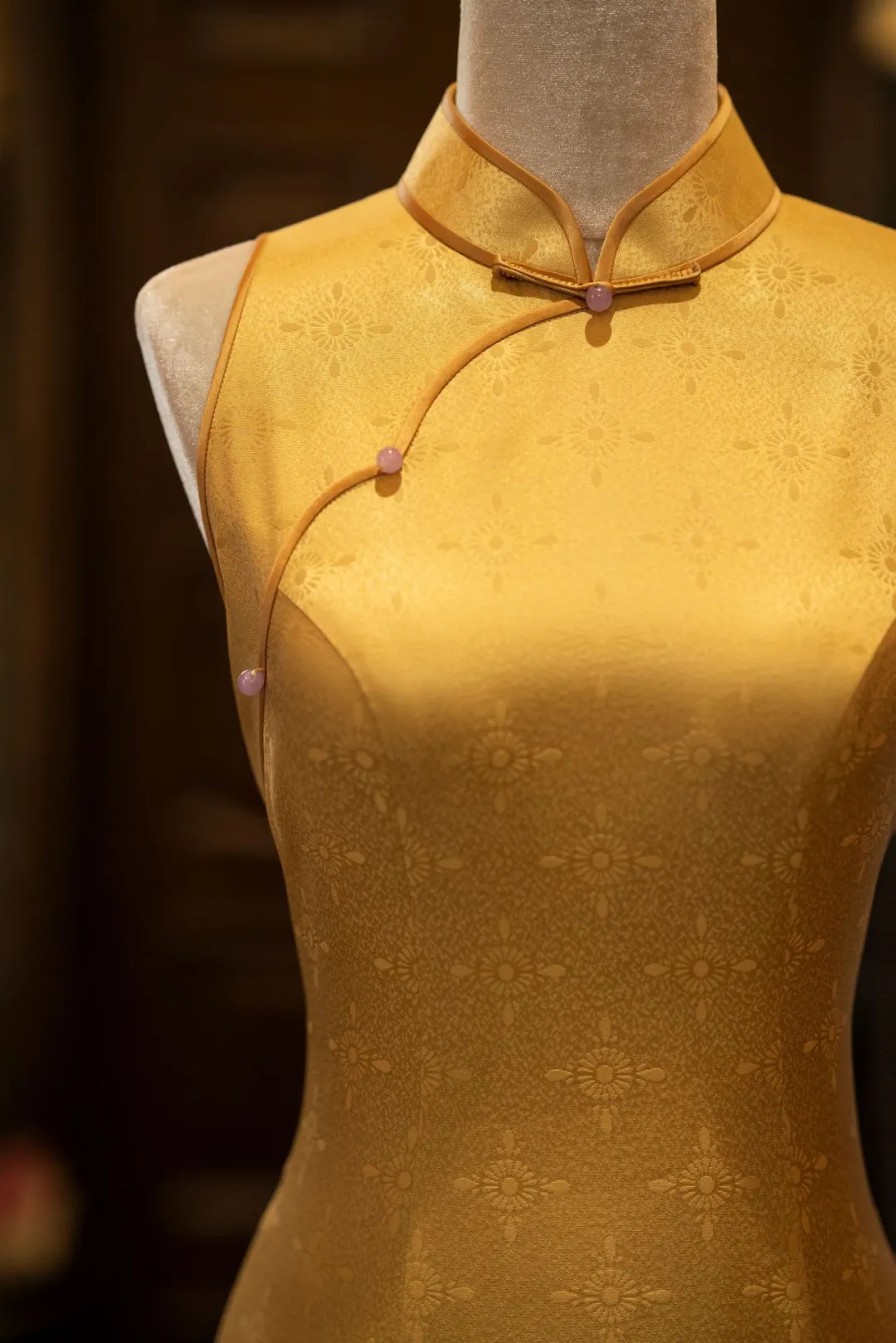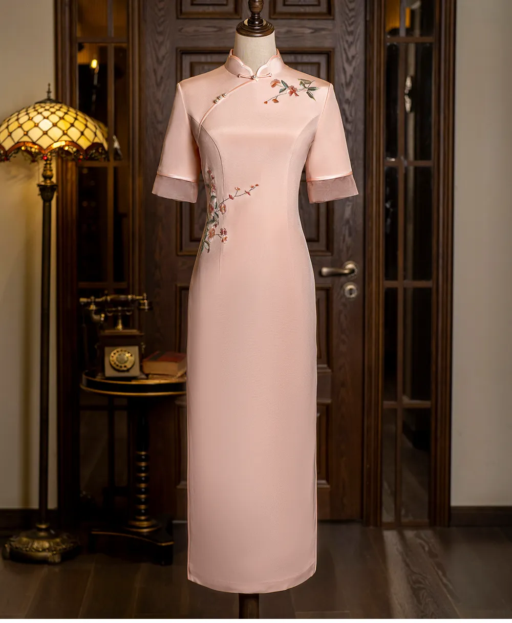 Some cheongsams are born to dance with summer! The encounter between the scents of gardenia and jasmine marks an unforgettable beginning. Certain beauties are naturally suited to conspire with summer, like a cool and elegant cheongsam. When the afternoon light cuts diagonally across the skirt, the wind takes on a beautiful shape. It glides along the curves of the waist, cascading into ripples at the slit. The satin adorned with magnolia or bamboo leaves, originally nurtured in ink wash, is awakened by the summer breeze, wrapping around a woman’s graceful silhouette and turning the heat into light, poetic rhythms. The upper body is secured with traditional knotted buttons, locking in warmth, while the lower body lets the summer breeze roam freely. The flowing patterns on the fabric reveal how this long summer is stitched into the lining of time. Wearing such a cheongsam is the most unique beauty and joy of summer.