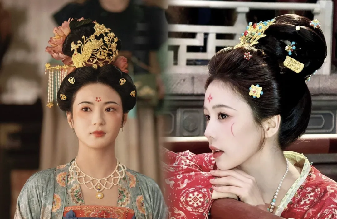Who understands! There was a kind of resplendent beauty in old TV dramas. When I was a child watching period dramas, I was always amazed by the large phoenix hairpins and the dazzling golden ornaments on the characters' heads. It fulfilled the imagination of grandeur and nobility. Why is this style less common in modern dramas? Let's start with the conclusion. This style of wearing numerous hairpins was particularly representative of the late Tang Dynasty, with its origins traceable back to the Southern and Northern Dynasties. The late Tang period witnessed unprecedented extravagance in women's hairstyles and attire, often described as 'explosively stylish.' Literary descriptions further deepened our imagination of ancient women's hair ornaments. For example, Emperor Xiao Yan of the Southern and Northern Dynasties wrote in 'Song of the River,' 'Twelve rows of golden hairpins on the head, five - patterned silk shoes on the feet.' Tang poet Shi Jianwu also noted in 'Makeup Removal Poem,' 'Under the lamp, I gaze again at the bronze mirror, vainly inserting twelve rows of golden hairpins.'