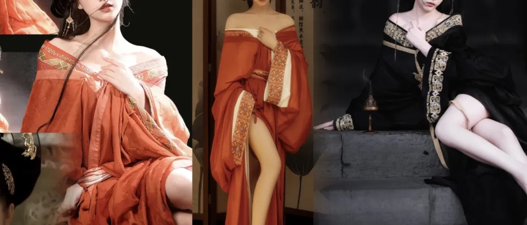 Does this way of dressing really exist? First, there were indeed wide - necked robe designs in the Qin and Han dynasties, used as outerwear when layering. Later, during the Northern and Southern Dynasties, it was mainly applied to ruqun (a traditional Chinese women's clothing style), a transition from the shallow cross - collar to the front - closing collar similar to that in the Tang Dynasty. However, this way of dressing was revealing but not alluring, having nothing to do with border - crossing.