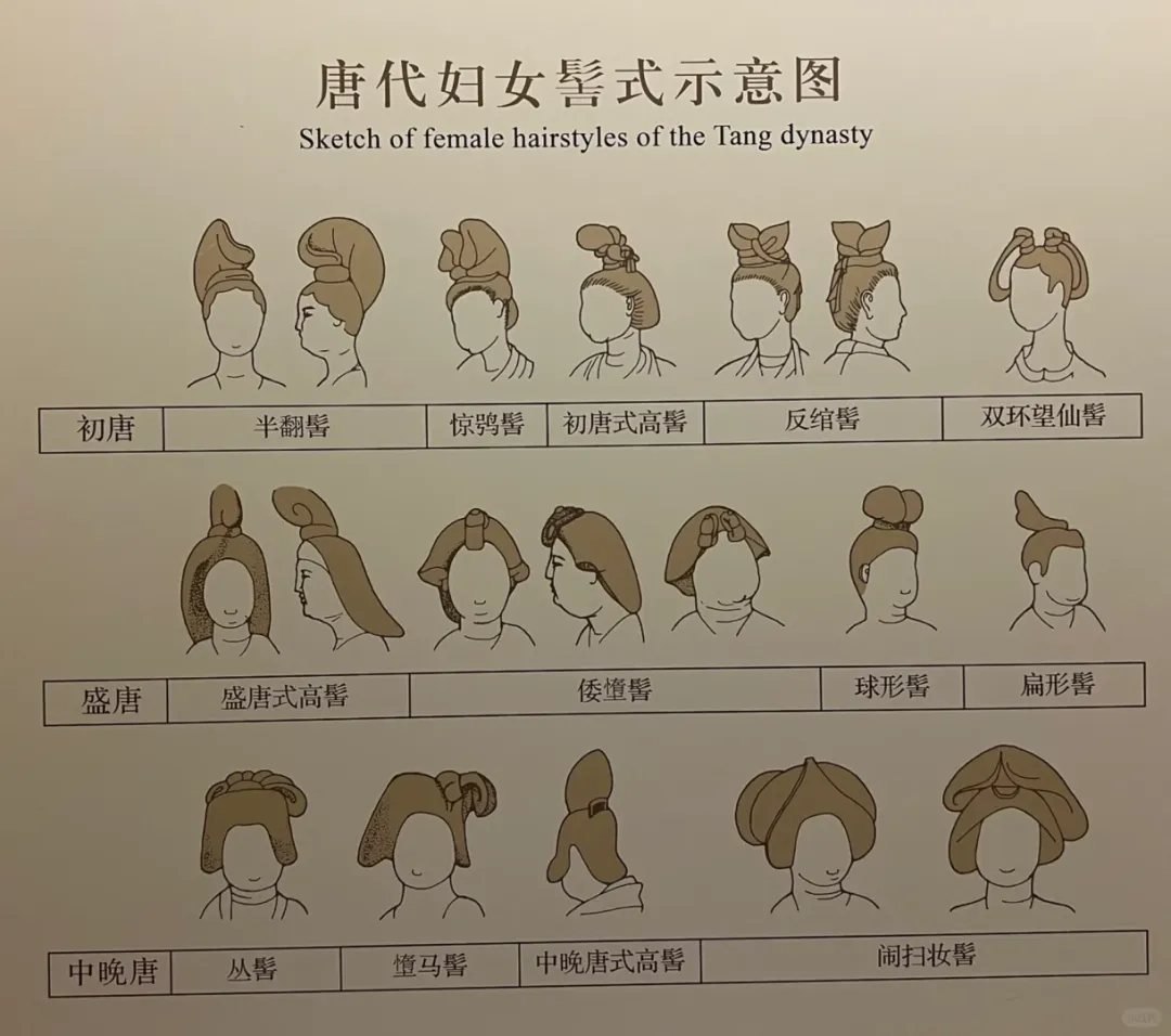 Normally, each era has its popular hairstyles, just like how our hair stylists recommend the latest trends. In the Tang Dynasty, there were mainly two popular trends among the common people. One was the hairstyles led by the aristocrats and idols; the other was the grooming styles that became popular spontaneously among the common people. Don't misunderstand that a single hairstyle only appeared in a specific period. Just as we still style our hair in previously popular ways, it was the same in ancient times. So we can only say that a hairstyle was popular, not limited to a certain period.