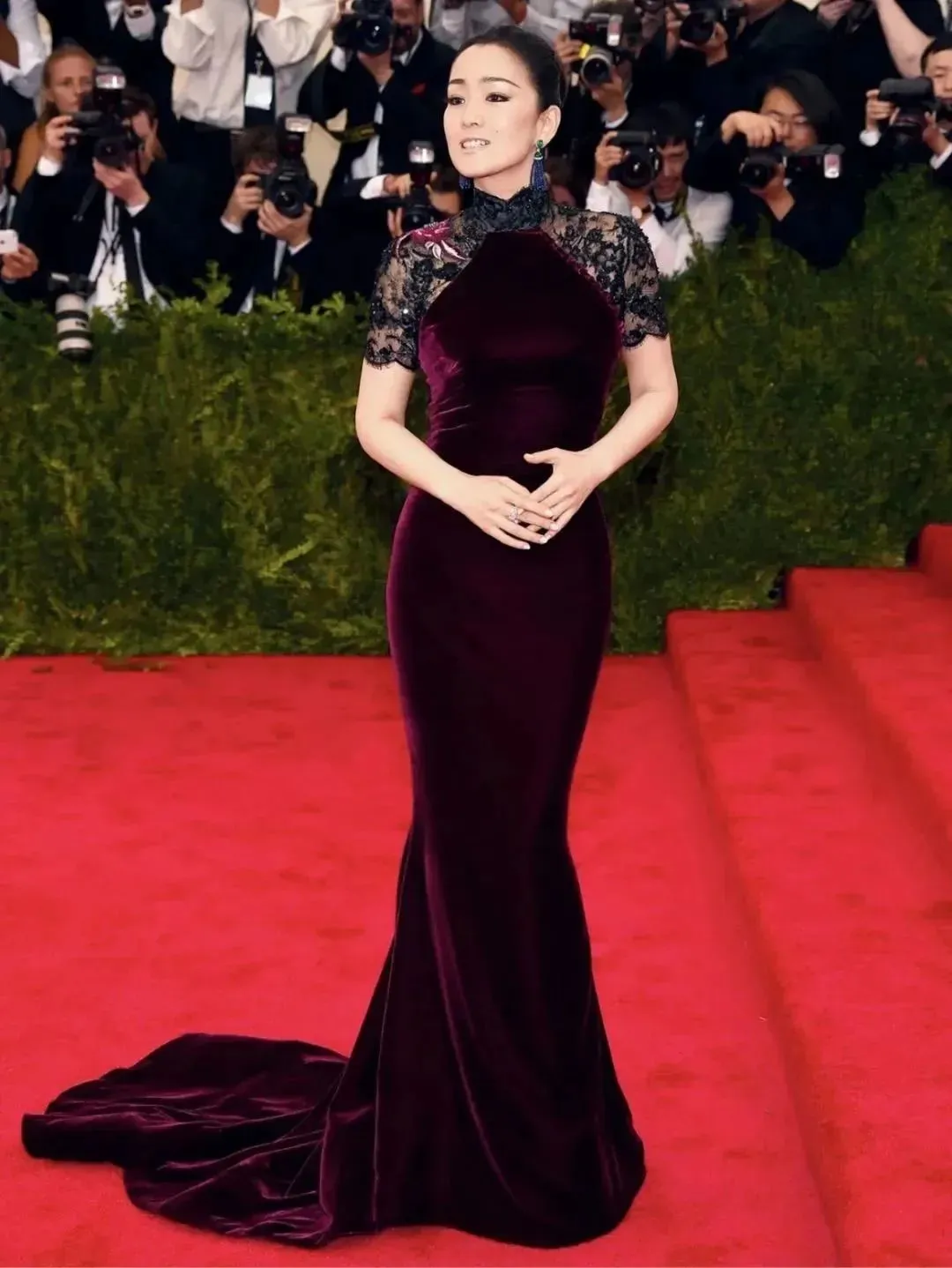 After nine years, at the New York Metropolitan Museum of Art's Costume Institute Gala, known as the 'Oscars' of the fashion world, Gong Li wore a red velvet evening dress, creating a textbook - level look in her red - carpet history. The lace cut - outs on her shoulders, neck, and back added a touch of hidden sexuality. Complemented by traditional Chinese embroidery, it was like a masterpiece with exquisite artistic appeal. Against the backdrop of the luxurious velvet full of classical charm, she was like a proud and domineering mermaid queen standing in the shining lights.