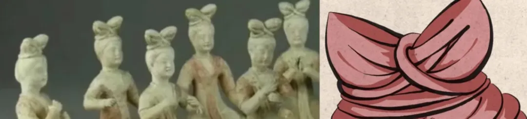 In addition, although this double - bun style seems upright, the forward - leaning posture often seen in Tang - style hairstyles reflects another gentle charm. The Intertwined - heart Bun looks similar to the Lily Bun. The biggest difference is that there's a strand of hair winding around the buns. It was very popular during the Wu Zhou and prosperous Tang periods. There are also other rabbit - like hairstyles, such as the double - loop hanging buns in the upper - left picture, the unnamed 'lop - eared rabbit' style in the middle, and the exaggerated double - knife buns in the right picture. They're all created by combining two buns with different shapes. We can also create numerous hairstyles using this formula today. So, these are all extensions of the ancient double - bun style, full of inspiration.
