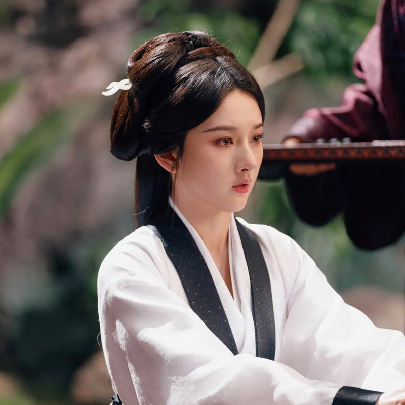 Unlike the showier gold-and-gem hair accessories, these jade pins sit at the heart of the hairstyle, literally and visually. This choice fits perfectly with the Wei-Jin era's obsession with natural beauty and effortless elegance.