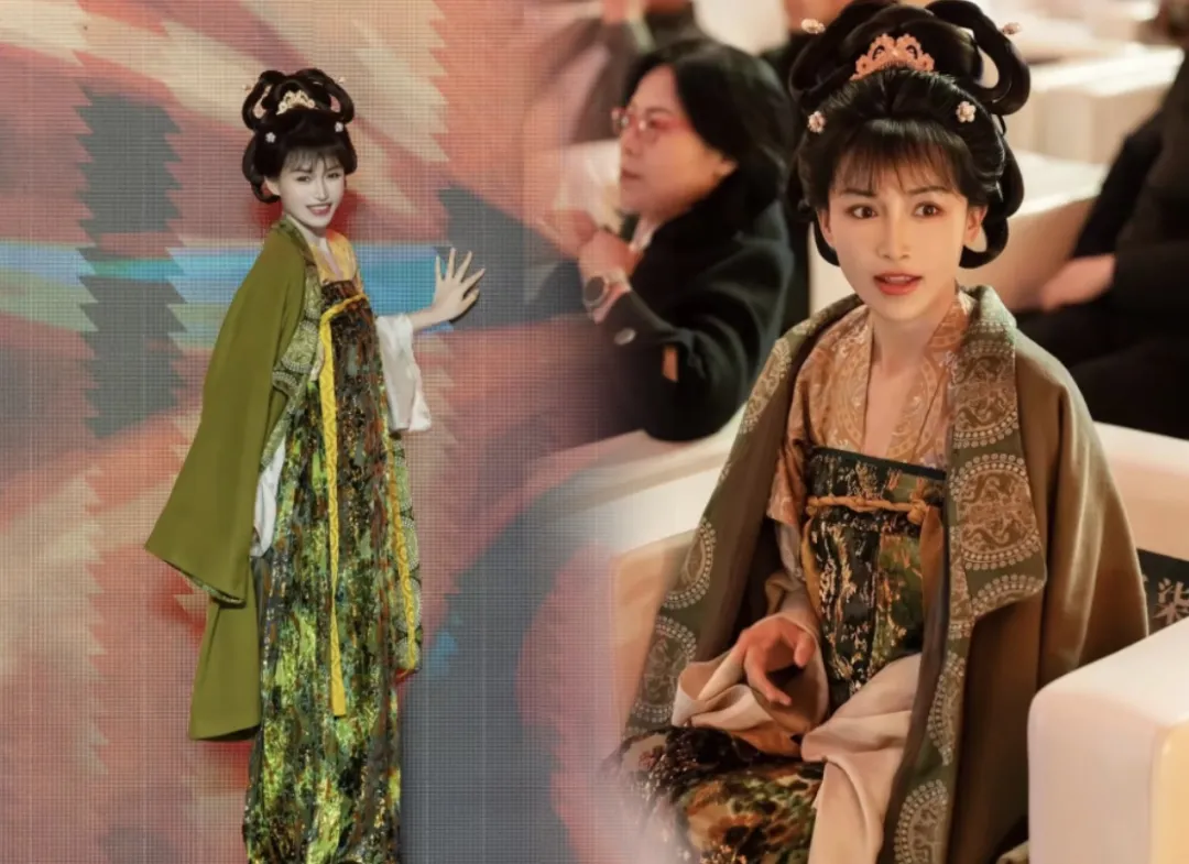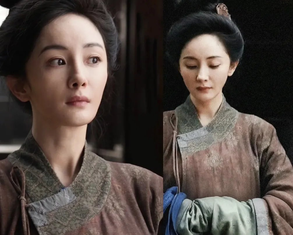 First, Yang Mi's outfit resembles a Tang-style collar. It can be worn as a draped jacket or buttoned up, with hair styled in a bun. The draped jackets we've seen before usually have widened collars and are worn with the collar turned up. When not worn with the collar turned up, it's similar to a round - collared robe. By adjusting the position of the ties, it can also show a double - overlay effect of a cross - collar and a round collar. The color scheme of this outfit uses earth tones, giving an overall feeling of simplicity and a daily look, and it's very approachable in terms of color.