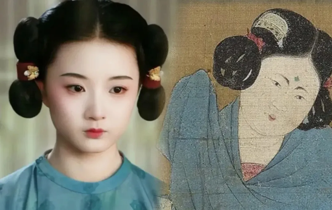 The double - hanging buns are characterized by 'hanging down'. Sometimes they are two buns behind the ears, and sometimes multiple loops hanging down. Without the hanging - down characteristic, they are usually called 'Ya Ji' (丫髻) or 'double buns'. Besides double - hanging buns, the Ya Ji style is also common among maids.
