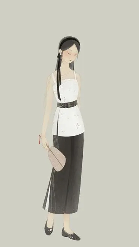 The Song aesthetic translates beautifully to modern smart-casual or minimalist fashion. Think a cropped, right-closure blouse with narrow sleeves paired with wide-leg, ankle-grazing trousers featuring subtle side slits. Low, simple block-heeled shoes in muted tones like celadon green complete the look – graceful, fluid, and effortlessly chic.