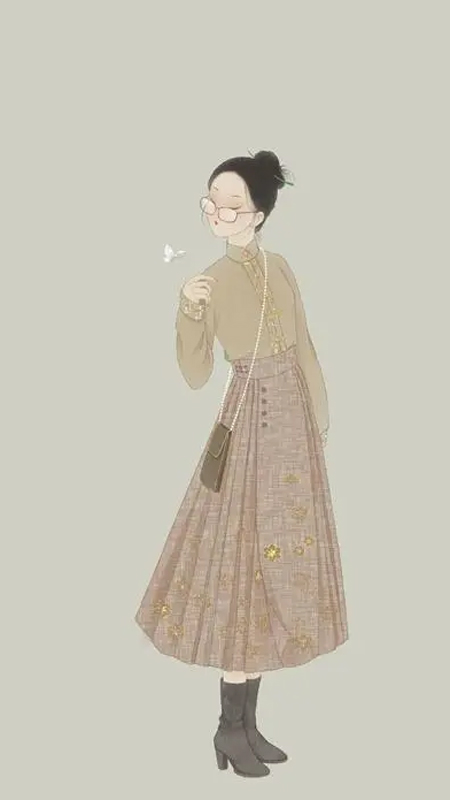 The Ming dynasty (1368-1644 AD) refined structure, exemplified by the iconic mǎmiàn qún. Characterized by its four-panel construction (two forming the flat, apron-like "horse face" front and back, flanked by pleated sections), it often featured decorative lán (襕) borders. The evolution led to the highly pleated bǎizhě mǎmiàn qún. Ming style today translates into sharp tailoring. A fitted, high-collared blouse tucked into a high-waisted horse-face skirt offers a powerful silhouette. Modern versions might simplify the pleating or abstract the "horse face" panel, but the vertical emphasis and structured elegance remain. Pairing with ankle boots or loafers grounds the historical reference firmly in contemporary style.