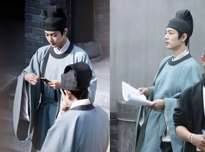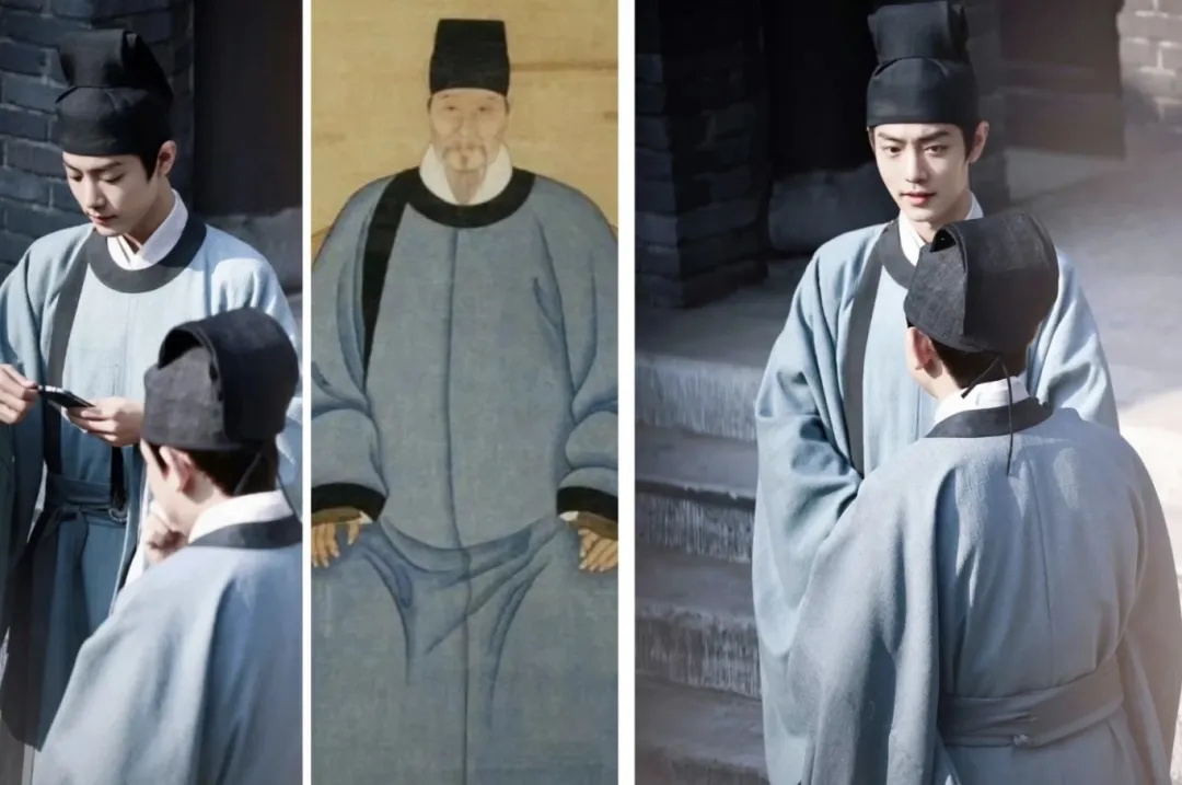 First, the clothing Xiao Zhan wears in "Zanghai Zhuan" is a round - collar lanshan (襕衫). The round - collar refers to the collar style. Lanshan was particularly popular in the Song and Ming dynasties. Wearing a Confucian cap, it became the iconic clothing for the scholar - official class, Confucian scholars, and students at that time. Also, it was widely used in the Confucius worship ceremonies in local rural schools as the exclusive clothing for the dancers in the six - column dance.