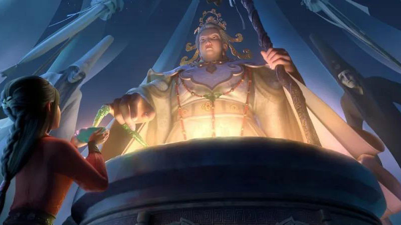The Daughter of Magistrate Lu visually realizes traditional Chinese concepts of the afterlife: the Yellow Springs (黄泉), Bridge of Helplessness (奈何桥), Gate of Rebirth (往生门), Lady Meng who serves the oblivion soup (孟婆), and , the Black and White Impermanence, soul guides (黑白无常). These needed concrete visual forms while retaining an element of suggestion and restraint. "There are two scenes set in the underworld," the directors noted. "The first submits to fate; the second rebels against it. We needed to convey the earth-shaking power of primordial cosmic forces (天地玄黄). The greater this power, the more fragile and precious the opposing emotional force becomes. Both scenes are set in Huangquan, but their atmospheres are worlds apart."