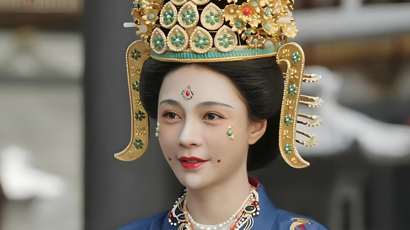 Shen Mengchen’s portrayal, radiating imperial authority with every subtle movement, offers a glimpse into the sophisticated beauty standards and rigid hierarchical symbolism embedded within the Tang Dynasty’s courtly attire, particularly focusing on the extravagant headwear, the stately robes, and the distinctive facial adornments that defined an era.