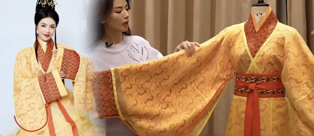 For example, during the Qin and Han dynasties, the 'Chuihu Sleeve' (垂胡袖) was popular. The cuff of this sleeve was narrow, and the sleeve shape was similar to the wrinkled flesh hanging under a yellow - ox's throat (in an extended sense, 'Hu' refers to all such things), with a gentle arc. According to Shuowen Jiezi (说文解字), 'Hu means the hanging part under a cow's jaw.' However, the cinematic 'Chuihu Sleeve' has obviously undergone some combined and 'radical' modifications, incorporating the large - arc characteristics of the Ming - style Pipa Sleeve. Many 'Han - style' Chuihu Sleeves on the market now also have this effect.