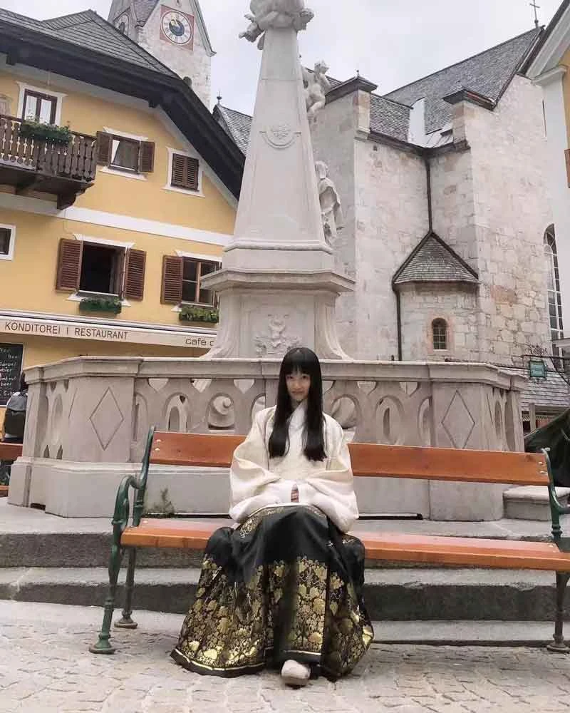 This time, she climbed the highest Chug peak in Germany in her hanfu, and the beautiful hanfu was praised by many tourists.