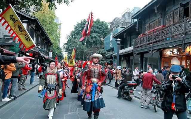 On November 22nd, Hanfu Parade Day, Hanfu enthusiasts gathered in Wenshufang (文殊坊), Chengdu to experience the beauty of Chinese Hanfu.