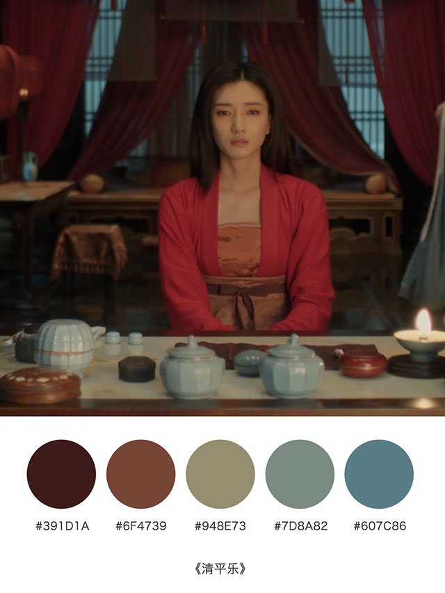 Traditional Chinese color scheme in Serenade of Peaceful Joy (清平乐).