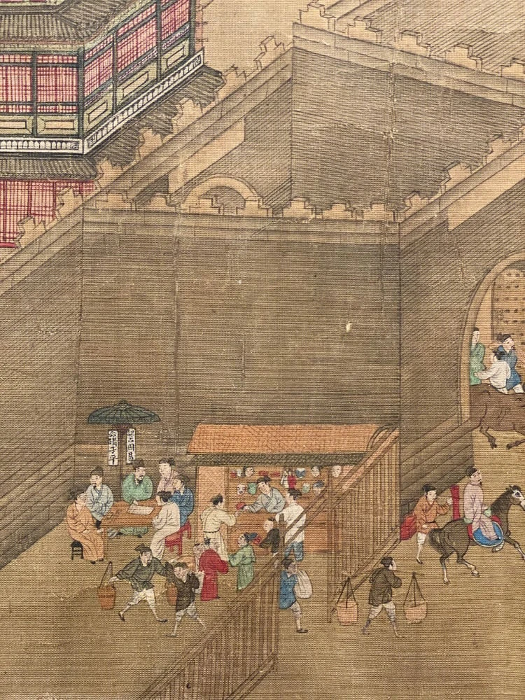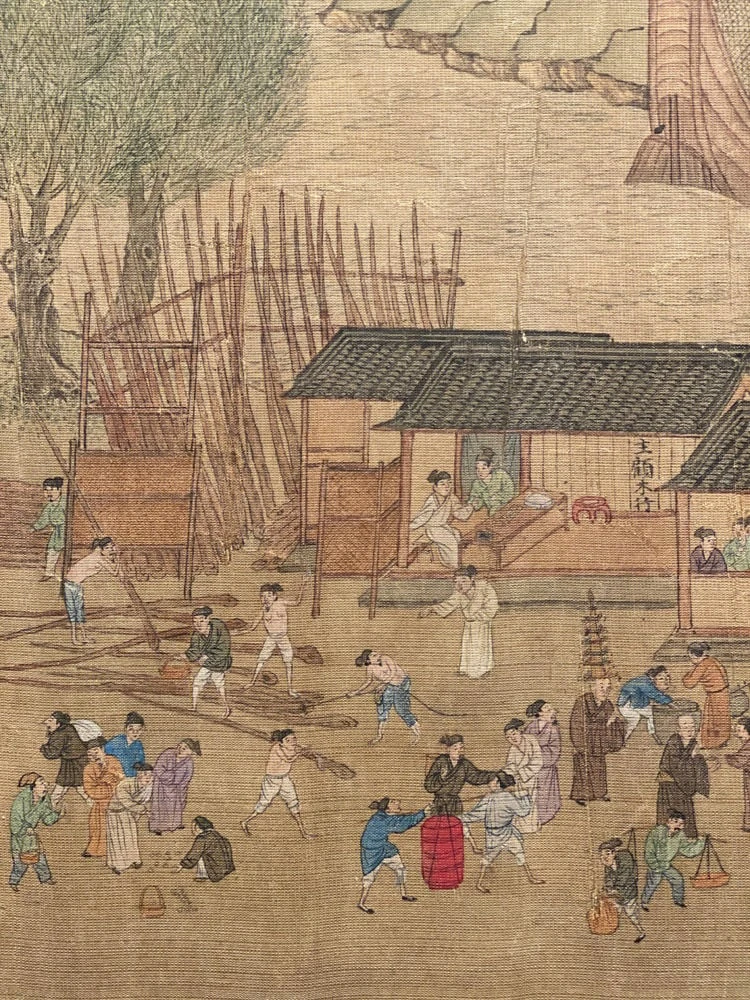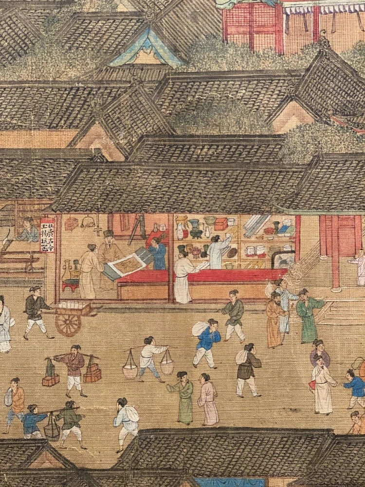 In the painting "Along the River During the Qingming Festival", Chou Ying version.