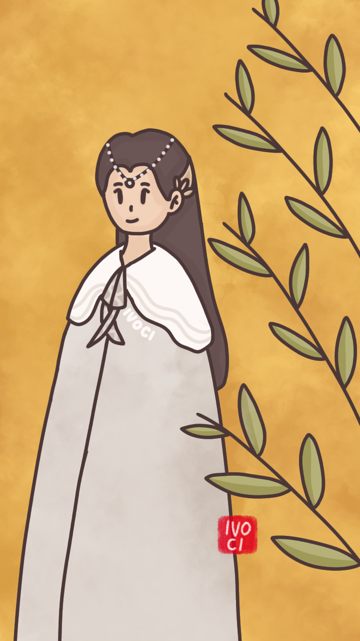 Hanfu girl wearing jiaoling ruqun and doupeng, enjoying the breeze and falling leaves.