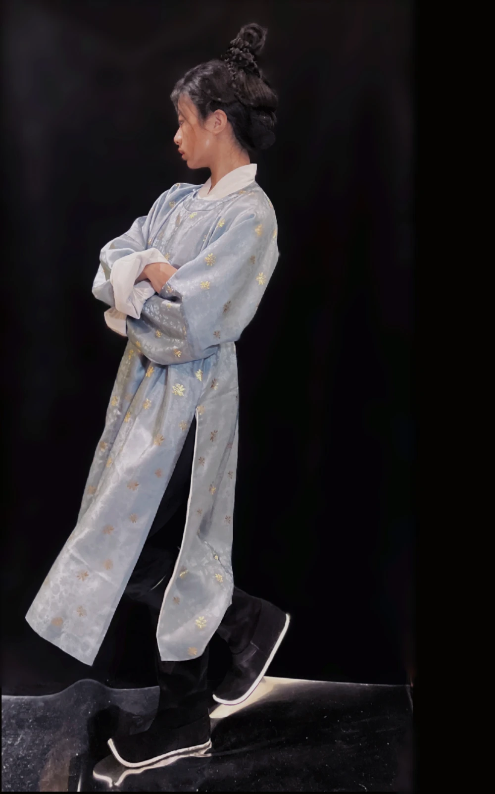 Took these yesterday 🙂 Fengyu or Nectar, Tang yuanlingpao. I designed this for Cloud9's Taqing collection with Yingmei's help! Featuring pockets, rayon lining, and a beautiful blue brocade.