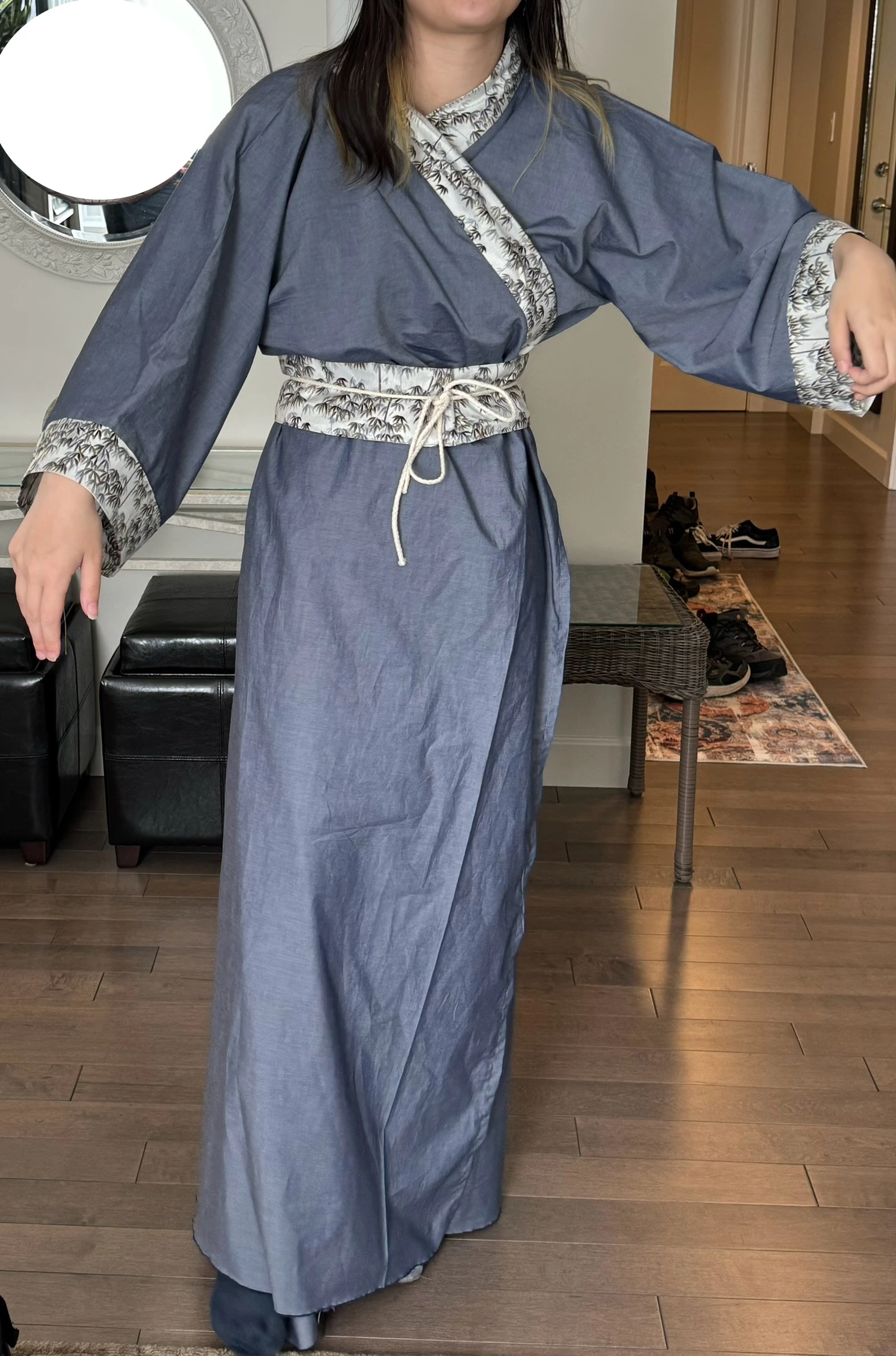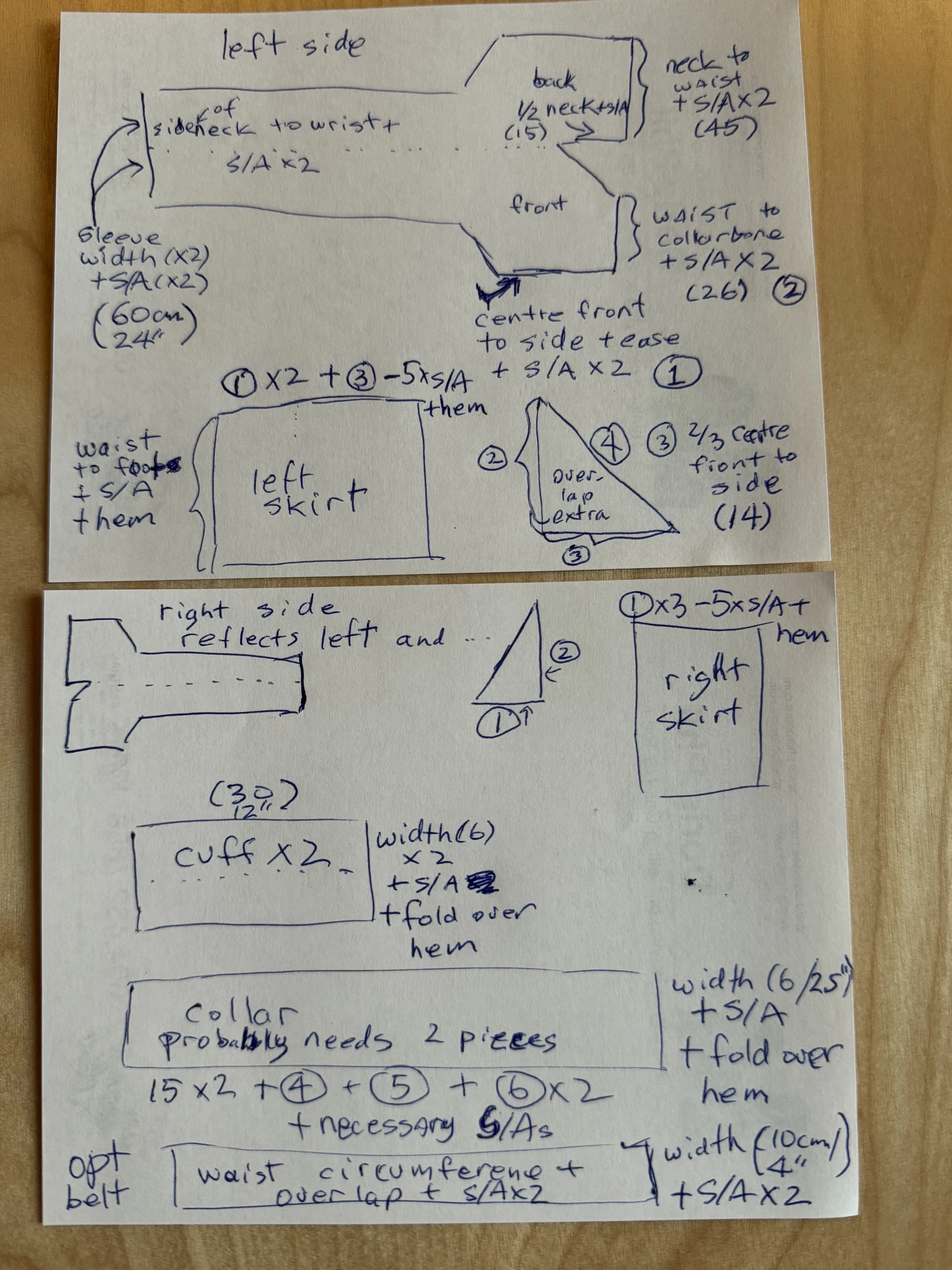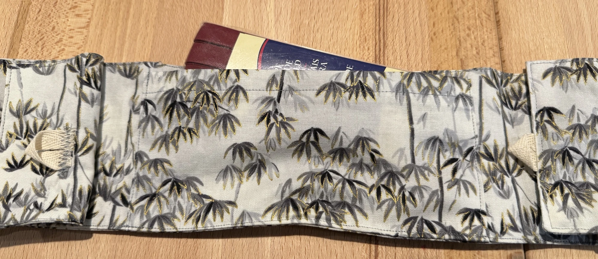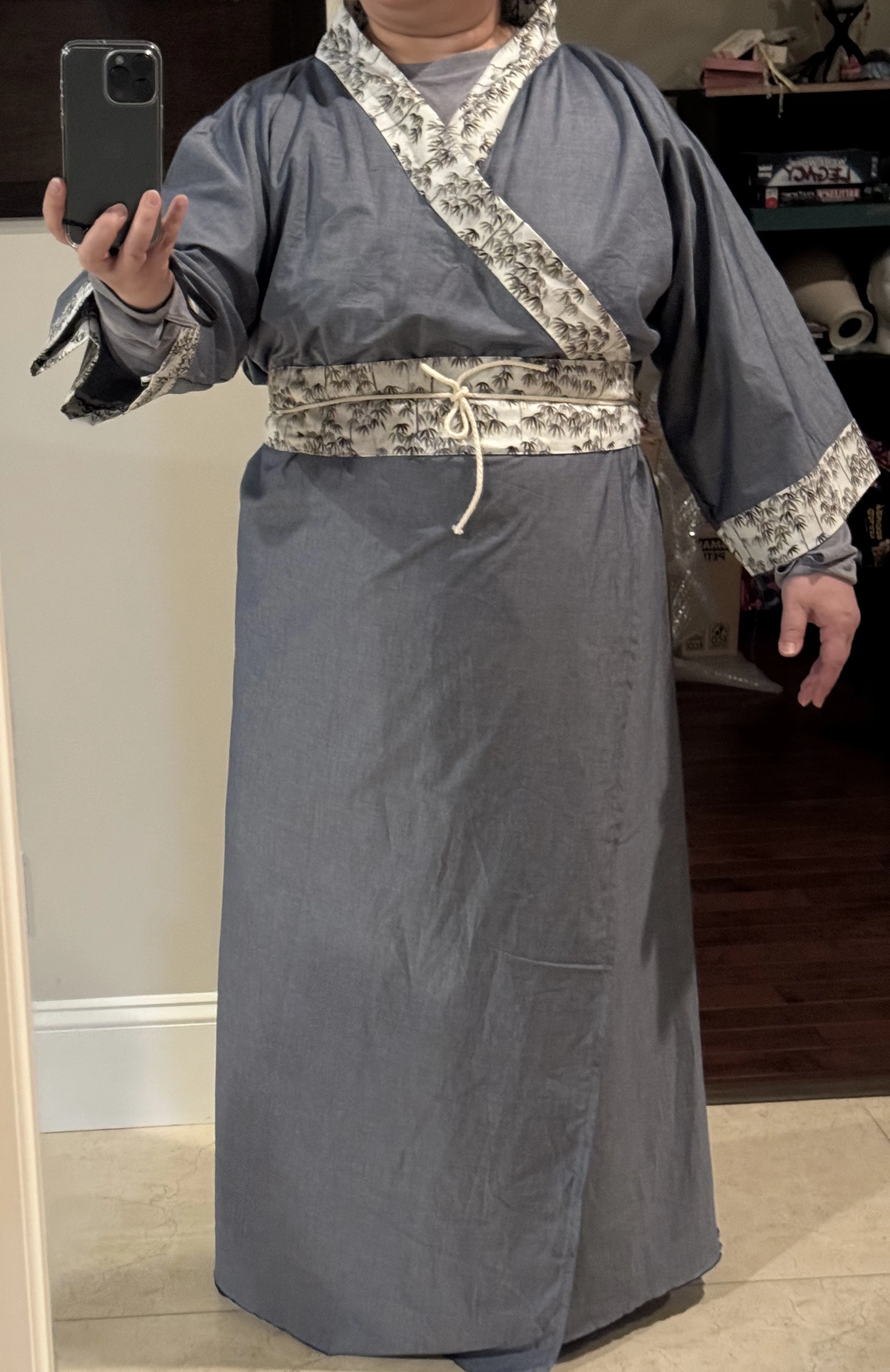 The neck area and torso length numbers from the book were fine but I used my own measurements for waist, sleeve length, and height. I triple checked that there were no ties in this pattern and also that other patterns in the book had ties, so the book doesn't expect you to add ties as needed, so there are no ties in my robe. So, I made a very simple belt to which I added a cell phone pocket. 😎